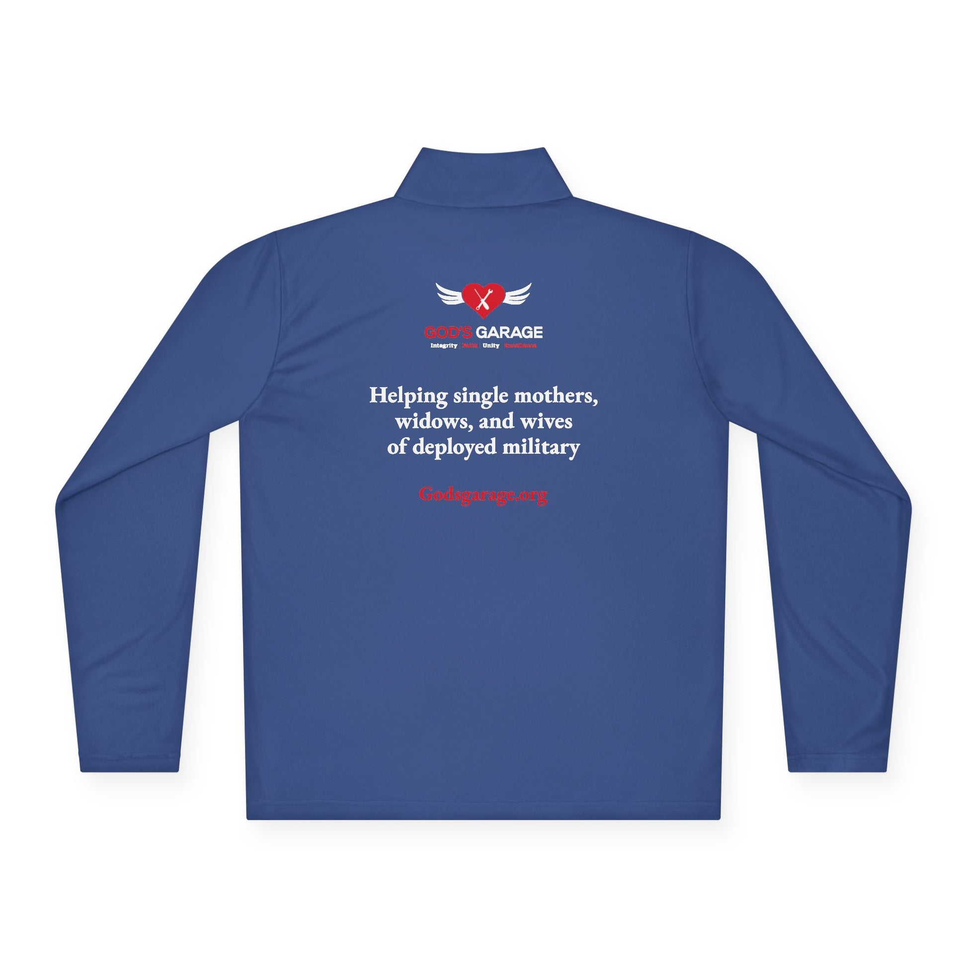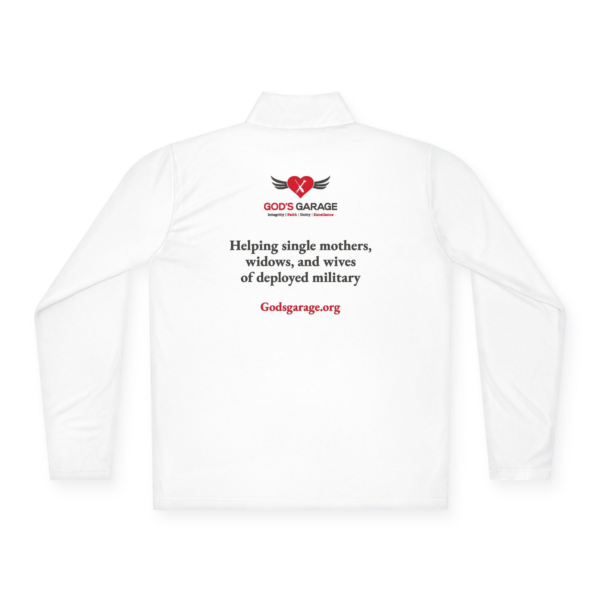 Every purchase helps God’s Garage continue providing free vehicle repairs and transportation to single mothers, widows, and wives of deployed military members. More than just a pullover, it’s a statement of faith and a symbol of hope for those in need.